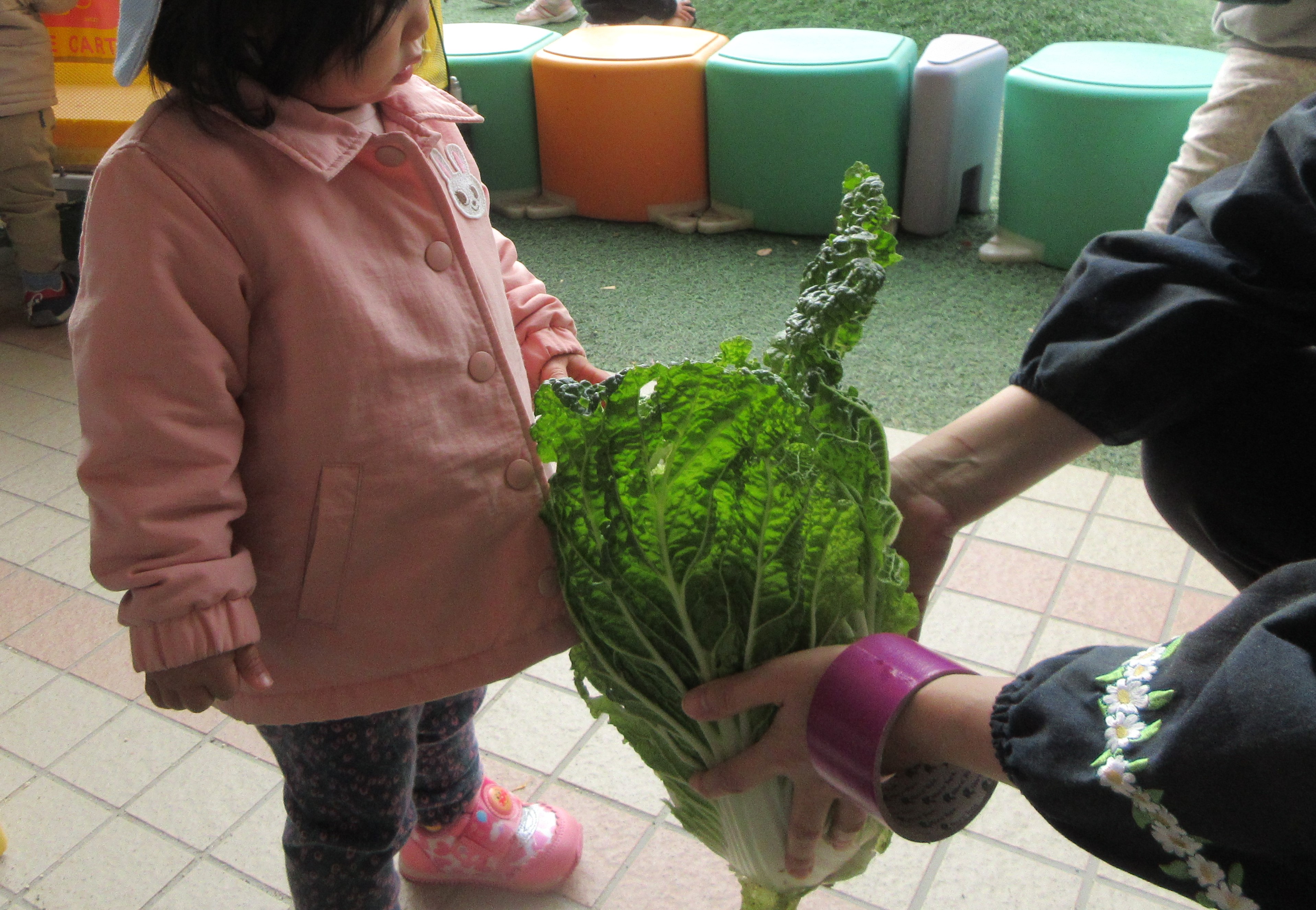 園で採れた白菜をさわったよ 園で育てられた白菜収穫して園庭で洗っていたので触らせてもらいました^^ 「これなに?」「はくさい?」と興味津々な こどもたち。 「給食とかお家で食べてるんだよ」と伝えると ''ふ~ん'' という表情をしていました。 食材に触れることで、食べることへの興味が高まったり苦手な野菜を食べてみようと思えるといいな♪ 2024/03/26