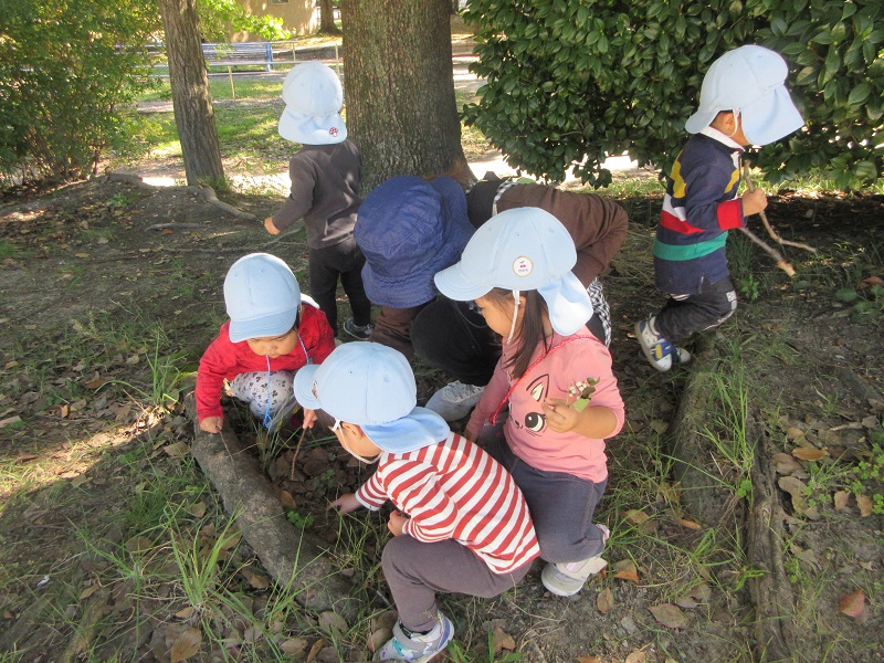 あひるぐみの最近 暑い夏も終わり、季節はもうすっかり秋ですね。 あひる組の子どもたちの最近の楽しみは散歩で公園に公園に行くことです!◎ 朝の会で「天気良いね、散歩いこっか」というと「いくー!」と返してくれたり、歩きながら 「こうえん、いこ」と伝えてくれるほどノリノリです♪ ドングリや落ち葉、木の実を集めたり、先生や友だちと一緒に木の後ろや茂みでかくれんぼしたり.. 4月のころに比べて足腰も強くなってきた子どもたち。 富士山すべり台にも挑戦しています!^^ 2022/10/28
